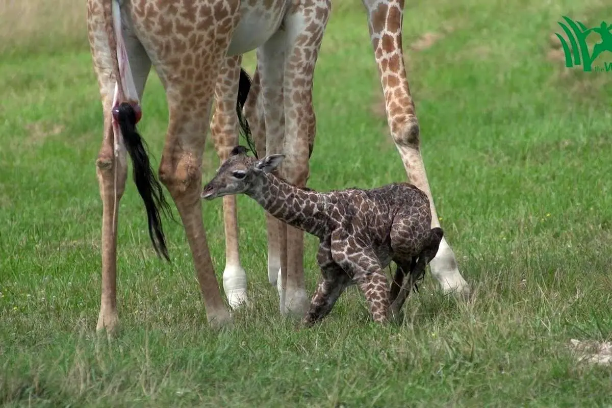 لحظهای دیدنی از حیات وحش ثبت شده است که در آن یک بچه زرافه تازه متولد شده، در حالی که مادرش با دقت در کنارش ایستاده، نخستین گامهای لرزان خود را برمیدارد.